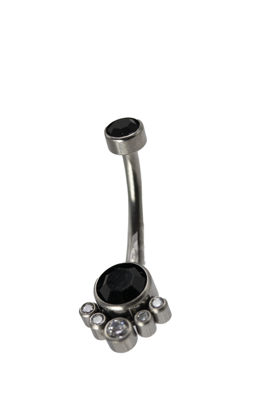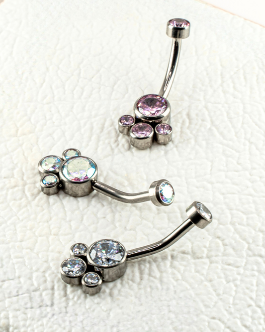F-136 Titanium Paw Gemstone Cluster Navel Curved Barbell 14G