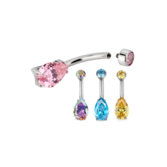 F-136 Titanium Pear Gem Prong Internally Threaded Navel Curved Barbell 14G