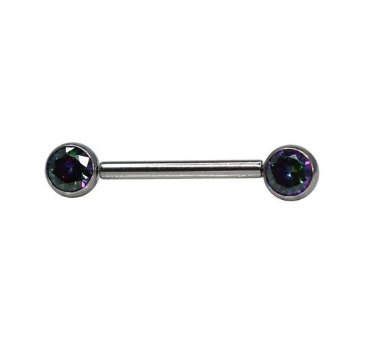 F-136 Titanium Threadless Nipple Straight Barbell Set Iridescent CZ Bezel