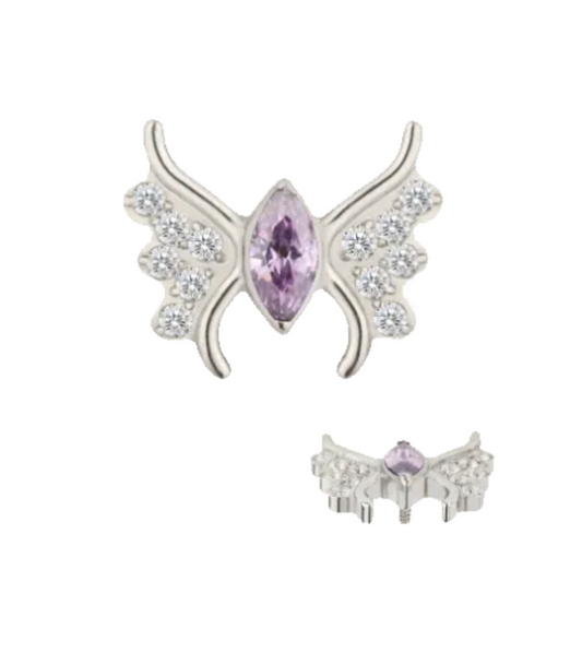 F-136 Titanium Gemstone Butterfly Internally Threaded 16G