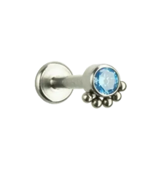 F-136 Titanium Blue Single Gemstone with 5 Dots Internally Threaded 16G