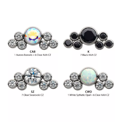 F-136 Titanium Chevron Gemstone Cluster Internally Threaded 16G